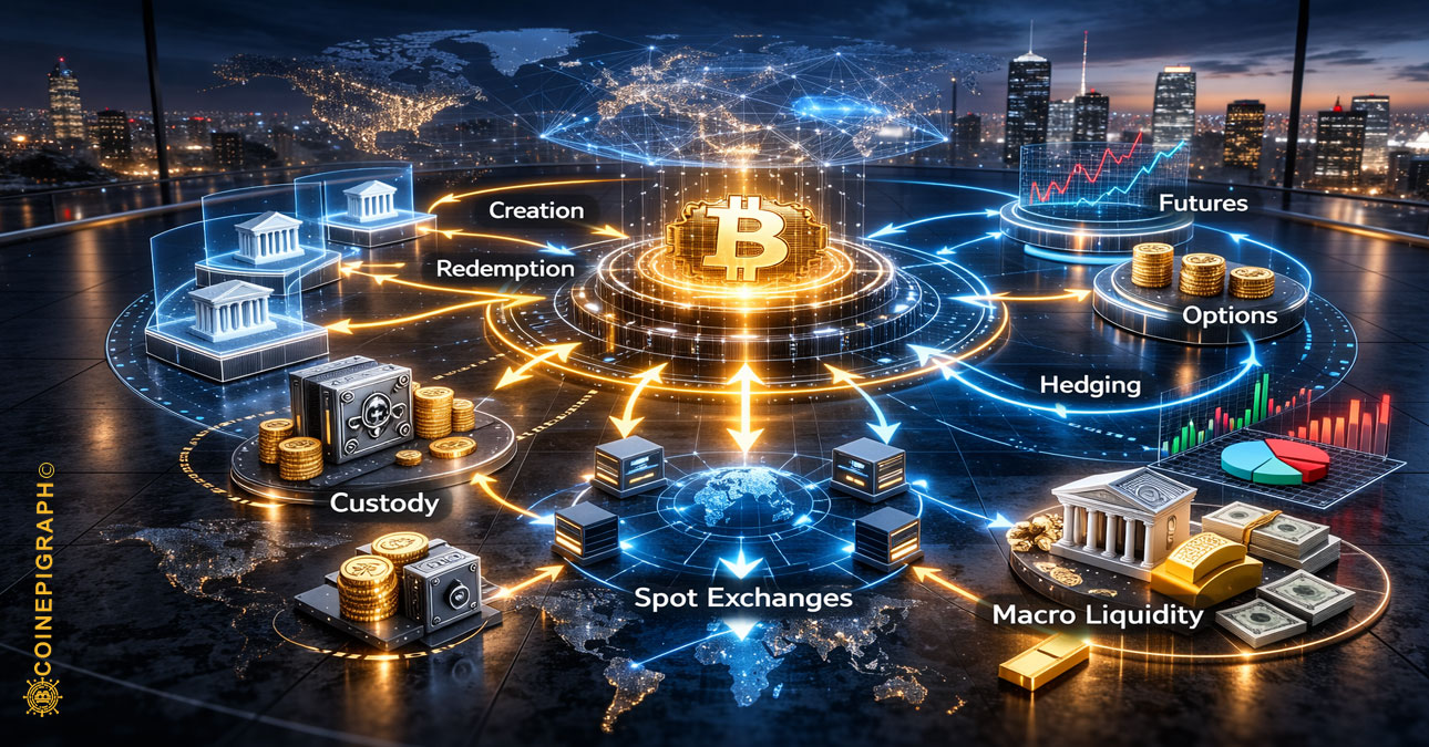 Bitcoin was designed to exist outside traditional financial control structures. Yet in its ETF era, it increasingly trades within institutional plumbing: authorized participants, derivatives desks, systematic liquidity providers, and cross-venue arbitrage engines.